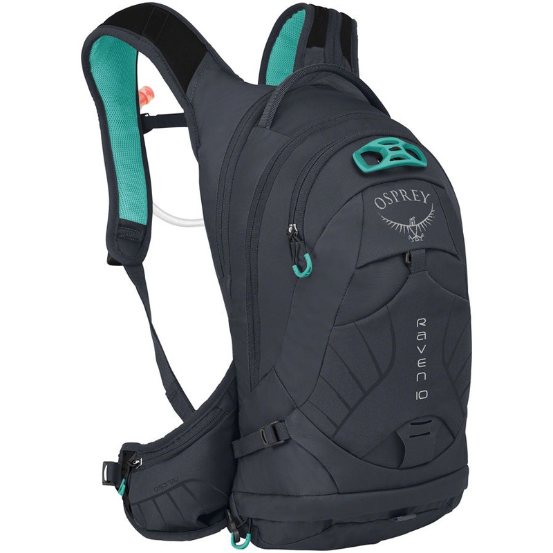 Osprey Raven 10 Womens Hydration Pack: Lilac Gray. The Osprey Raven Womens hydration pack is a Premium mountain bike pack with purpose-built features to keep you moving on the trail. Should you flat crash or bonk smart access to dedicated storage pockets g