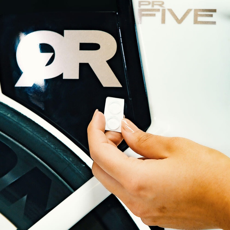 To help, we would like to send current Quintana Roo PRseries triathlon bike owners*free of chargethis small adhesive rubber tab.