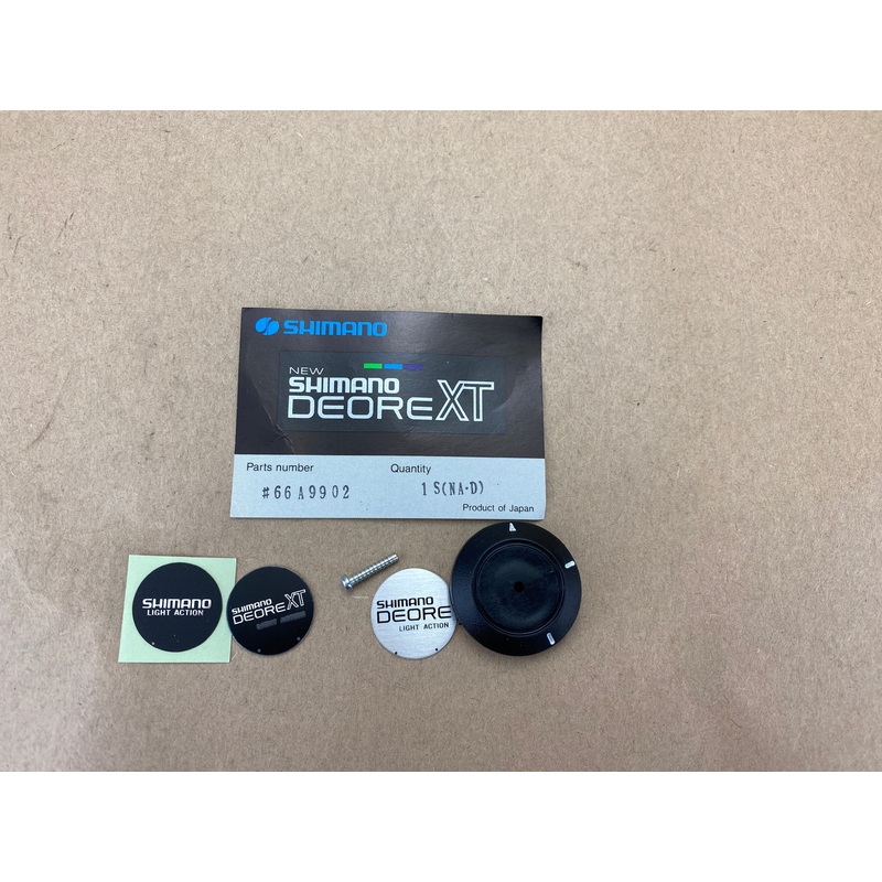 NOS Shimano Deore XT Thumb Shifter Caps in the bag. Lot of 9. New in package. Includes decals for XT, Deore, SIS. 2871