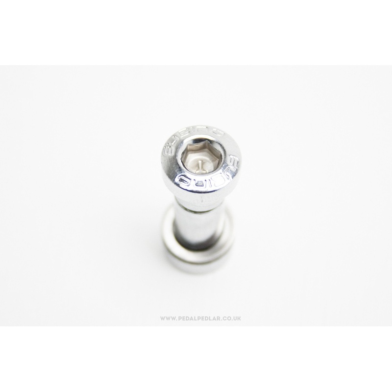 Handy little cr-mo Sugino seat pin bolts, to replace the now obsolete Campagnolo ones. These are the standard 8mm size with one side keyed, to fit most classic steel frames & come in 19, 22 & 25mm lengths for many different frame designs.